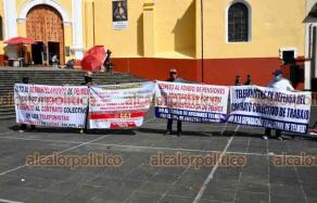 Integrantes del Sindicato de Telefonistas de la República Mexicana se manifestaron en la Plaza Lerdo de Xalapa para defender el contrato colectivo de trabajo, de los empleados activos y la pensión luego de que, según ellos, Teléfonos de México (TELMEX) busca reducirles en un 40% su sueldo y su jubilación.