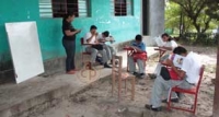 Alumnos de la escuela telesecundaria del ejido Piedras Negras de esta localidad reciben sus clases bajo la sombra de un frondoso árbol, pues no se han edificado aulas para esta escuela, fundada hace cuatro años.