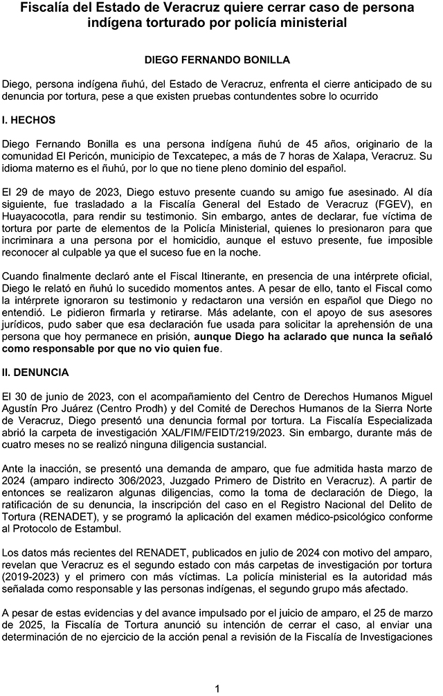 Temen carpetazo a caso de tortura de ministeriales a indígena del norte de Veracruz