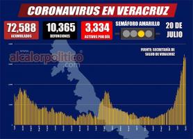 La jefa de Epidemiología de la Secretaría de Salud, Dulce María Espejo Guevara, informó que actualmente 3 mil 334 veracruzanos tienen activa su enfermedad de COVID-19; entre tanto, los contagios acumulados se ubican en 72 mil 588.