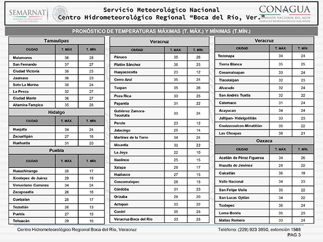 Aún se prevén lluvias localmente muy fuertes sobre el sur de Veracruz; mientras que, la temperatura mantendrá ambiente cálido a caluroso en gran parte del Estado.