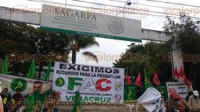 Agrupados en el Frente Auténtico por el Campo (FAC), agricultores bloquearon desde las 7:00 horas de este martes las instalaciones de la Delegación de la Secretaría de Agricultura, Ganadería Desarrollo Rural, Pesca y Alimentación (SAGARPA), para exigir el flujo de recursos para productores agrícolas y pecuarios.