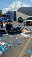 Decenas de volantes de la empresa Aseguradora Providence se esparcieron sobre el pavimento, mientras que la circulación vehicular quedó suspendida. Posteriormente, personal de la Guardia Nacional Carreteras, CAPUFE y del servicio de grúas retiraron el coche siniestrado para liberar la circulación.