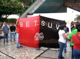 Integrantes del Sindicato Estatal de Trabajadores al Servicio de la Universidad Veracruzana (SETSUV) protestaron y marcharon este miércoles por la avenida Zaragoza en Coatzacoalcos.