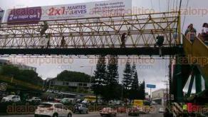 Estas fotos que comparto corresponden al puente peatonal de Plaza Cristal de la ciudad de Xalapa, Veracruz, casi todos los transeúntes quedaron impresionados al ver trabajadores colgados del puente limpiando y dando mantenimiento, pero sostenidos con una sola mano o alguna de sus piernas.