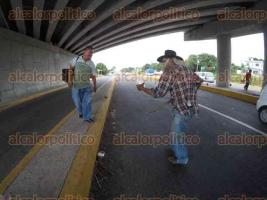 Acto seguido, los viejos se acercaban a la ventanilla del copiloto o del conductor para recibir unas cuantas monedas; aunque algunos choferes se pasaron de largo, la mayoría le dio dinero a este par de danzantes quienes movían el cuerpo al ritmo de cumbias y música norteña.