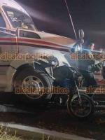 Un matrimonio que viajaba en motocicleta fue arrollado por un tráiler de Autotransportes Camus sobre la autopista federal 180 Cardel-Veracruz; la mujer murió en el hospital y su pareja permanece grave.