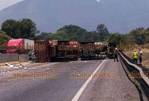 Cerca de 12 toneladas de basura quedaron esparcidas sobre la carpeta de rodamiento de la autopista 150-D Orizaba-Puebla, tras la volcadura de un tractocamión metros adelante del destacamento de Caminos y Puentes Federales (CAPUFE).