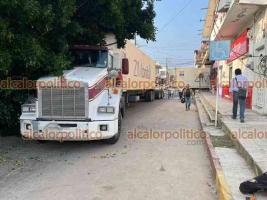 La mañana de este jueves, el conductor de un tráiler con doble caja causó diversos daños en la zona centro de este municipio, luego de perder el rumbo e ingresar por error a la avenida Pedro Belli y la calle Ignacio Allende.