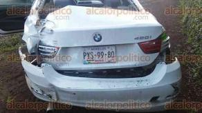 Daños materiales dejó un accidente automovilístico, registrado este domingo en la mañana en la carretera Xalapa-Veracruz a la altura de Las Trancas, donde un tráiler embistió a un automóvil BMW.