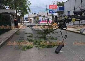 Un tráiler derribó varios postes de telefonía en el fraccionamiento Jardín, luego de engancharse con el cableado al pasar por la zona, lo que movilizó a elementos de Bomberos Voluntarios Veracruzanos.