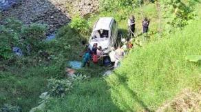 Vehículo y ocupantes salieron del camino y volaron hasta caer al fondo del barranco, justo en el paso de un riachuelo, donde quedaron lesionados.