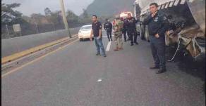 La tarde de este viernes, un tráiler chocó contra el muro central de la autopista 150-D, a la altura del kilómetro 263+700 en el tramo Nogales-Río Blanco; el hecho provocó el cierre parcial de la circulación y daños materiales.