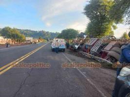 La mañana de este jueves, un tráiler de plataforma terminó volcado en la carretera federal 140, en el tramo que conecta Xalapa con Perote, a la altura de la zona conocida como La Joya.