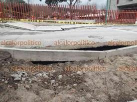 Fallo en una obra reciente de pavimentación en la calle Luis Hidalgo Monroy, ubicada en la colonia Rafael Lucio, quedó al descubierto tras el quiebre de la loza en un tramo clave.