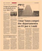 En su edición de hoy, el rotativo informa que Omar Yunes Márquez, señalado de ser uno de los mexicanos involucrados en los Panamá Papers, tiene dos departamentos que valen más de dos millones de dólares (35 millones de pesos) cada uno.