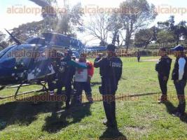 Dos elementos de la Policía Estatal asignados a este lugar y con base en la ciudad de Fortín, fueron trasladados graves en un helicóptero de la Fuerza Civil al Centro de Alta Especialidad (CAE) de la ciudad de Xalapa para su atención médica, tras resultar lesionados en un aparatoso accidente que se registró sobre la carretera federal Huatusco-Coscomatepec.