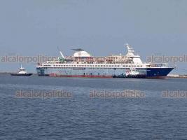 En el área de fondeadero, la embarcación que era “jalada” por el remolcador Cerro Azul, se sumaron tres embarcaciones más, para llevarlo a atracar en muelles de Protexa, en el puerto de Coatzacoalcos.