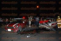 Cinco heridos, entre ellos menores de edad, fue el saldo que arrojó la noche del domingo un aparatoso accidente automovilístico en el crucero de los semáforos de la colonia 21 de Marzo, entre un taxi y un mini Cooper.