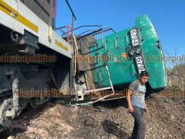 Un tráiler quedó totalmente desbaratado y una locomotora descarrilada, durante un choque registrado este viernes por la mañana a la altura del crucero hacia Soledad de Doblado.
