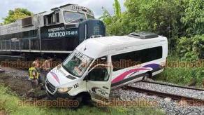 Tren embiste a camioneta de transporte público, en Cosoleacaque; no hay heridos