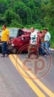 La mañana de este sábado se registró un aparatoso choque en la carretera estatal Papantla-Gutiérrez Zamora, entre una camioneta y un auto; tres hombres y una mujer resultaron gravemente heridos.