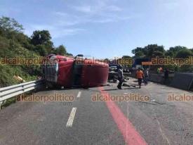 El percance ocurrió durante la mañana de este jueves en la autopista Xalapa-Perote en el carril con dirección a Veracruz, cuando al ir pasando a la altura del puente de Linderos, un tráiler cargado de hojas de triplay y madera sufrió una falla mecánica, sobreviniendo la volcadura.