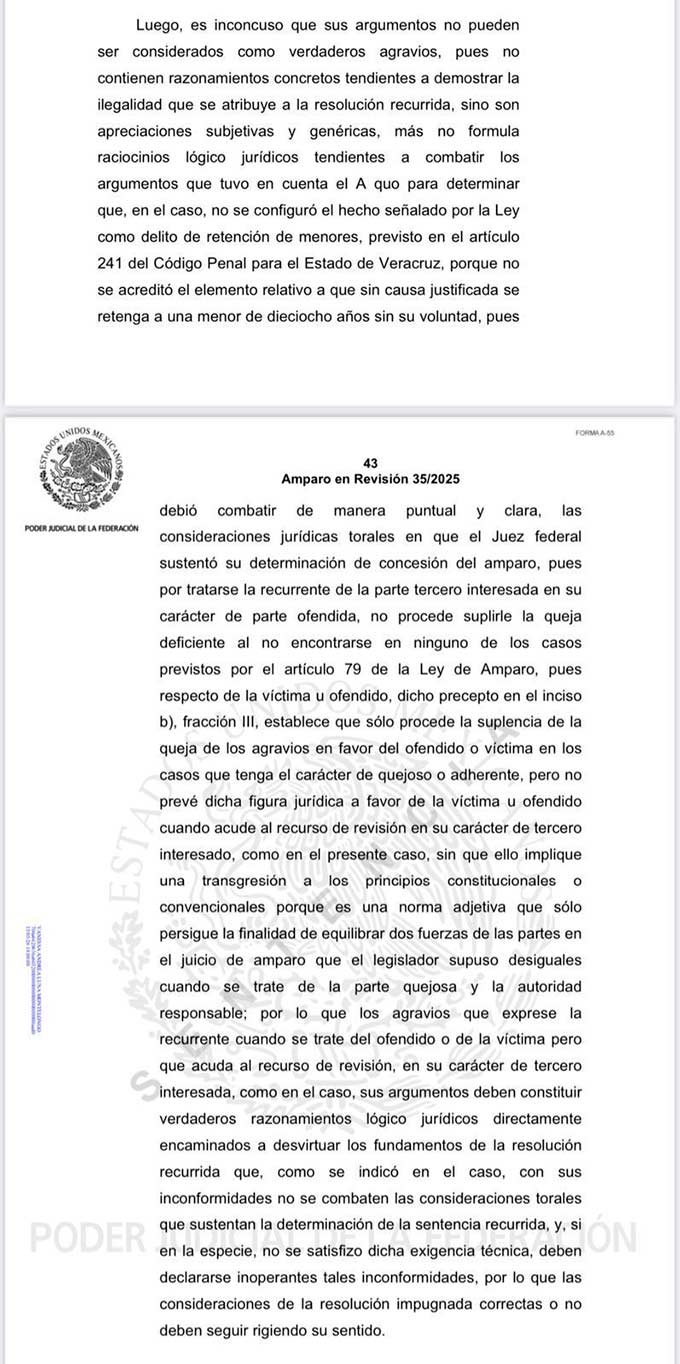 El recurso de revisión interpuesto por la madre de la menor fue declarado improcedente, al considerar el Tribunal que sus argumentos no cumplían con los supuestos legales establecidos para proceder como parte interesada. Con esta resolución, Rogelio Franco Castán recupera su libertad de forma plena, tras años de procesos judiciales que uno a uno fueron desestimados.
