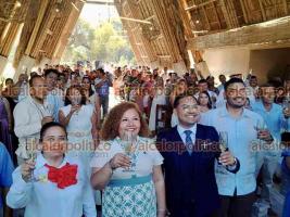 “Viva el amor, vivan los novios. Ustedes representan el orden y el futuro de nuestro municipio. Apazapan cree en la legalidad y respalda a sus familias”, expresó.