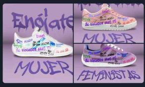 Entre los mensajes o “pintas” que adornan la línea feminista del calzado hay freses como “El violador eres tú”, “Sin miedo” y “No estás sola”, entre otras.