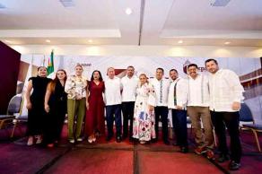 Su esposa la Lic. Pamela Morales Huesca, presidenta del DIF Tuxpan; el Dr. Jesús Fomperoza Torres, a alcalde suplente y la Q.I. Melba López Gutiérrez, directora del DIF Municipal.