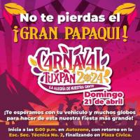 La Alegría de Nuestra Gente se sentirá este domingo 21 de abril a partir de las 6:00 de la tarde, con la realización del Gran Papaqui del Carnaval Tuxpan 2024.