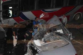 Un muerto y dos lesionados fue el saldo de la colisión entre un autobús de la línea Transporte Los Tuxtlas y un automóvil particular, sobre el tramo de la carretera estatal San Andrés Tuxtla-Tilapan