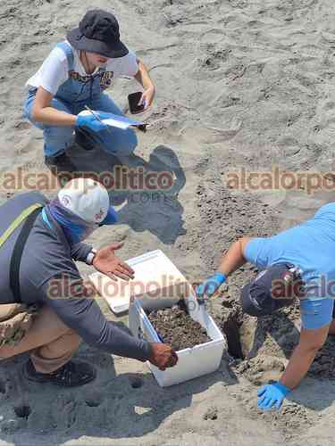 Boca del Río, Ver., 29 de abril de 2025.- Una tortuga Lora desovó en Playa Pelícano la mañana de este martes. Personas que hacían ejercicio en el bulevar Ávila Camacho dieron aviso a las autoridades. 108 huevos fueron asegurados por la Comisión Nacional de Áreas Naturales Protegidas.