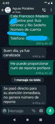 Reportamos con CMAS pero nos comentaron que mandáramos el video en WhatsApp y que iban a ver la manera para venir pero no han acudido ni nos han respondido.