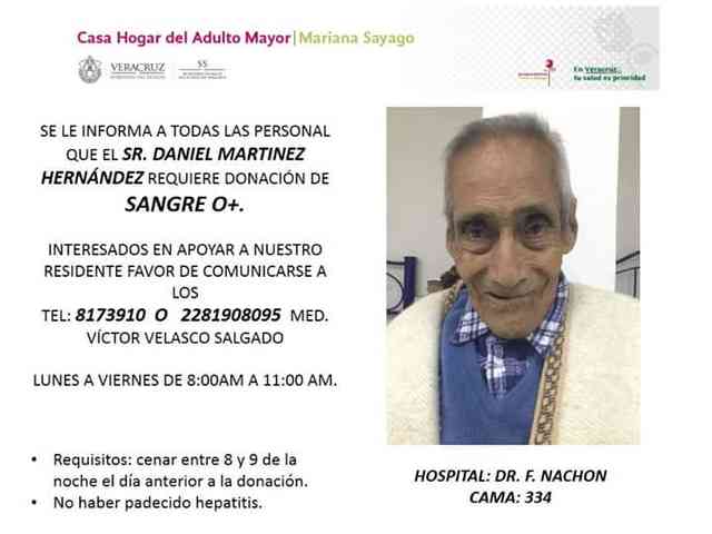 - Es para el señor Daniel Martínez Hernández, internado en el hospital “Doctor F. Nachón”