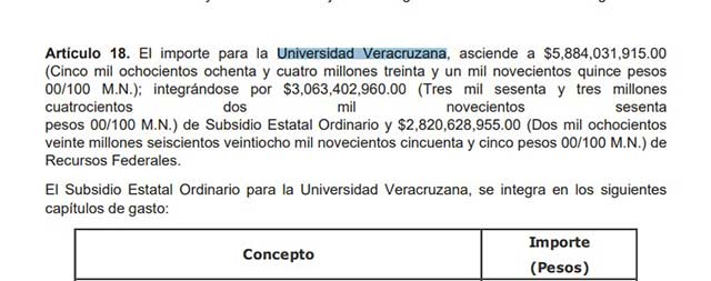Para 2023, el Presupuesto de Egresos del Gobierno del Estado de Veracruz proyecta un recorte para la Universidad Veracruzana (UV) que ronda los 40 millones de pesos, lo que violaría su autonomía presupuestal establecida por Ley.