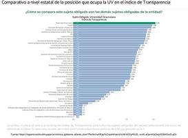 A nivel estatal, de los 43 sujetos obligados y evaluados en Veracruz, la UV ocupa el lugar 20 tomando como referencia el promedio de la MGA, pero en transparencia ocupa el primer lugar.