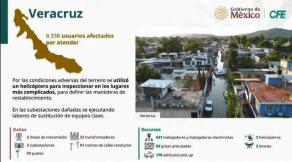 “Al día de hoy tenemos un 93 por ciento de restablecimiento con un acumulado de usuarios restablecidos en Veracruz de 121 mil 481”, explicó Calleja. Agregó que “en el estado de Veracruz tenemos 9 mil 338 usuarios afectados que nos están pendientes por atender por las condiciones de acceso a estas comunidades”.
