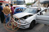 El carro Volkswagen Sedán, quedó prensado contra el camión urbano, ruta Chapultepec, tripulado por Gabriel Martínez García, quien sobre Católicas hacia la avenida Díaz Mirón.