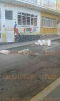 Vecinos agradecen a Centro Educativo, por tapar bache en calle de Coatepec