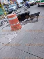 Vecinos alertan por socavón en avenida Hernández Castillo de Xalapa