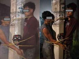 Ante ello, un grupo de residentes se organizó y, en cuestión de minutos, logró rodear y someter a los sujetos. Posteriormente, los ataron con cuerdas y los trasladaron hasta un poste de concreto, donde permanecieron inmovilizados.