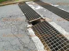 Comentan que ya ha habido vehículos que se les han ponchado las llantas debido a la coladera en mal estado y agregan que es un punto peligroso para motociclistas.