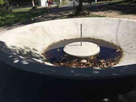 Lamentablemente, desde que tomó posesión la nueva administración, esta área verde se ha visto desatendida, como puede apreciarse en las imágenes adjuntas, la fuente está sucia y no se ha encendido en todo este tiempo, así como el popostero se ha convertido en un basurero.