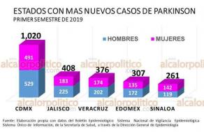 Por cuanto hace al estado de Veracruz, el número de nuevos diagnosticados con la enfermedad de Parkinson de enero a junio de este año, es muy similar al del mismo periodo del año pasado (370).
