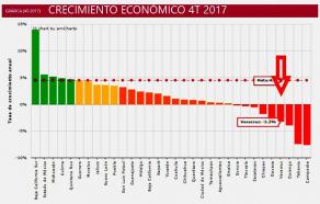 Sobre este tipo de indicadores, en febrero pasado Al Calor Político.com dio a conocer que el estado de Veracruz fue el segundo en el país con mayor decremento en la actividad industrial secundaria, de acuerdo al INEGI: (http://bit.ly/2IBDxoH ) lo cual explica el decremento al final del año 2017, que fue de menos 3.2 por ciento en el indicador de crecimiento económico.