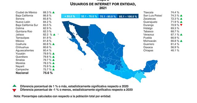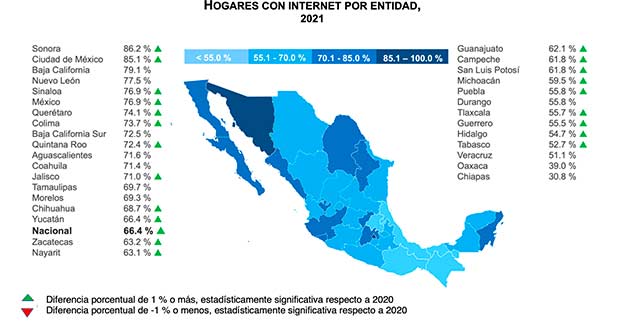 La encuesta igual advierte que al menos la mitad de las viviendas en la entidad cuentan con servicio de internet, con un 51.1 por ciento, esto es apenas 4.4 por ciento en comparación con 2020.