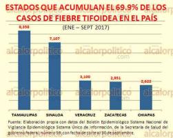 Estos cinco estados de la República suman en conjunto 24 mil 138 de los 34 mil 519 casos de fiebre tifoidea registrados en el país, en los primeros nueve meses del año, esto es, el 69.9 por ciento del total.