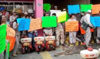 No hay uniformes ni equipos de protección, pero lo grave del caso es que están aplicando un insecticida tóxico para quien lo esparce.